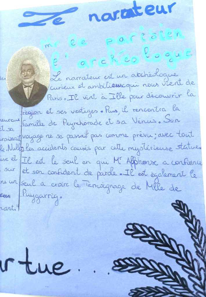 Les élèves de la classe de 4eA ont donc lu et étudié la nouvelle « La Vénus d’Ille » de Prosper Mérimée, puis l’ont illustrée sous forme d’exposés.